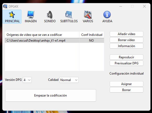 Cuando termina la codificacion, tu archivo dpg debe de estar en el mismo sitio donde está tu video que has pasado a dpg